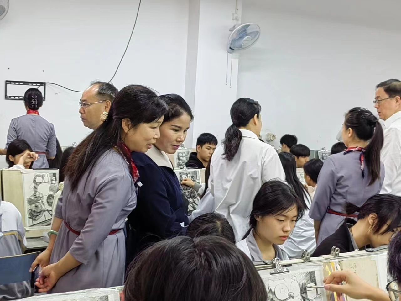我校张毅书记汇报了我校办学历史,我校主要开设有绘画、戏曲表演、运动训练、机器人技术应用、现代家政服务与管理和计算机平面设计6个专业,办学以来为大学输送大批优秀学子。