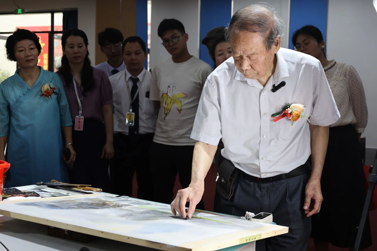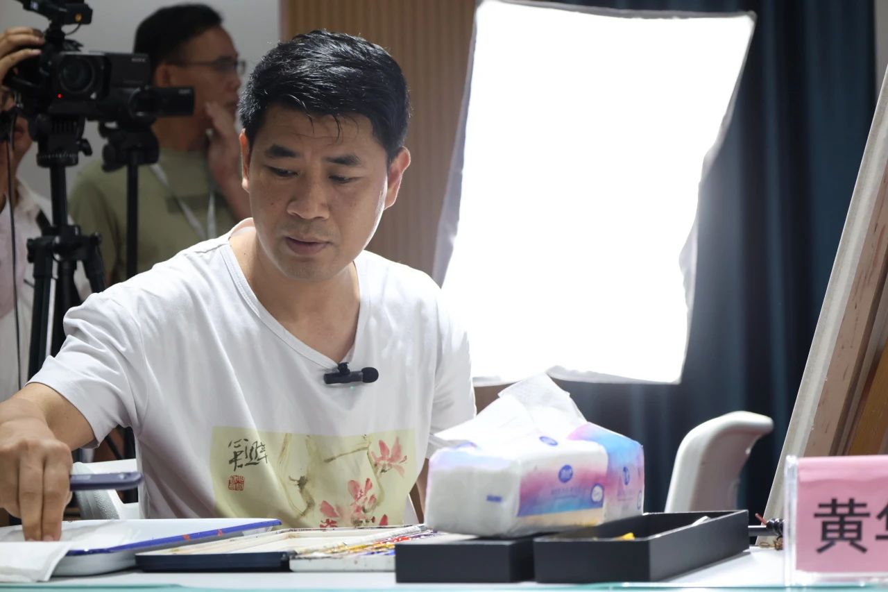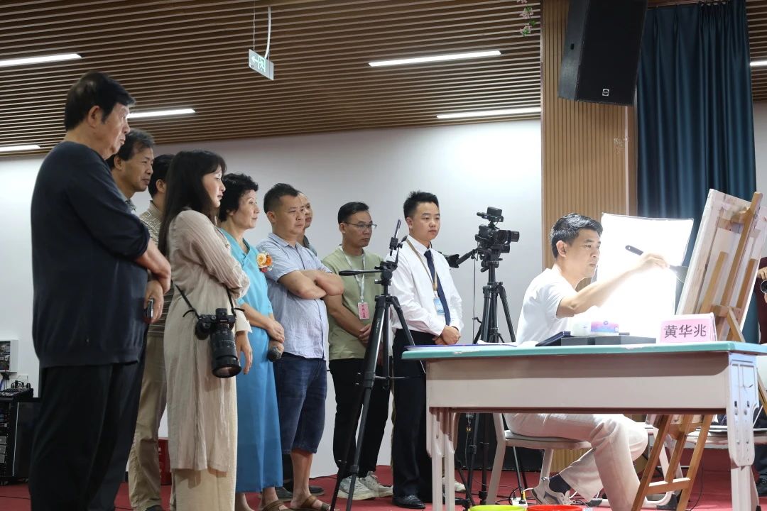 广西水彩画家协会主席黄华兆教授讲授少数民族水彩人物的注意事项并进行创作示范。培训活动结束后教育局黄雅文老师献花给黄华兆教授表示感谢。