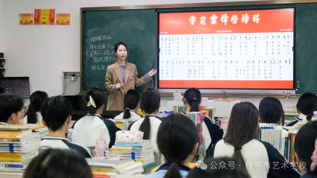 歌声唱响信仰——音乐课上师生共唱《学习雷锋好榜样》,激昂的旋律在走廊回荡,朴素的歌词点亮少年心灯;