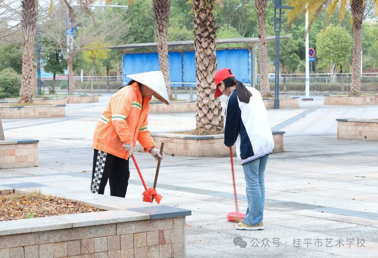 志愿者的担当——师生志愿者走进桂平站广场,弯腰拾起垃圾、俯身整理车辆,用双手守护城市文明,以实际行动诠释新时代雷锋精神。