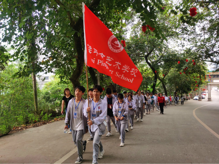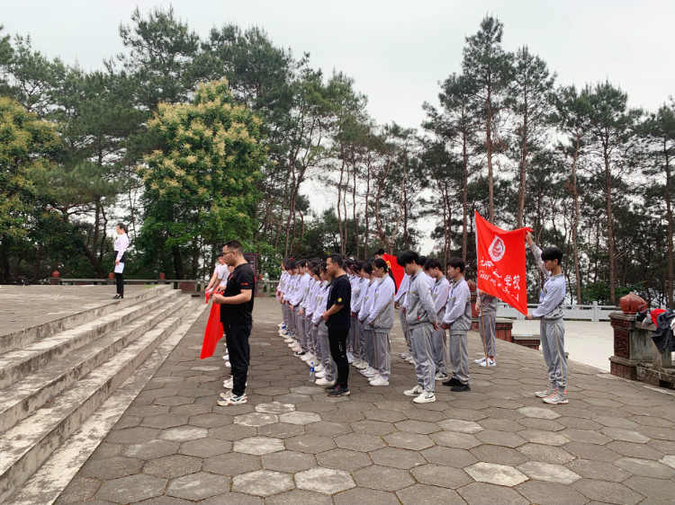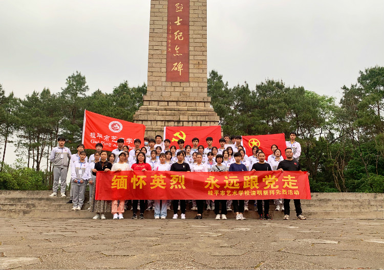 优秀学生代表们身穿校服,手举校旗从学校出发,一路前行到桂平市革命烈士纪念碑公园。为启迪后辈,振兴桂平,1981年广西壮族自治区人民政府批准建设革命烈士纪念碑,树立黄日葵、胡福田烈士雕像,纪念革命烈士433名,缅怀先烈光辉业绩,继承先烈革命精神。