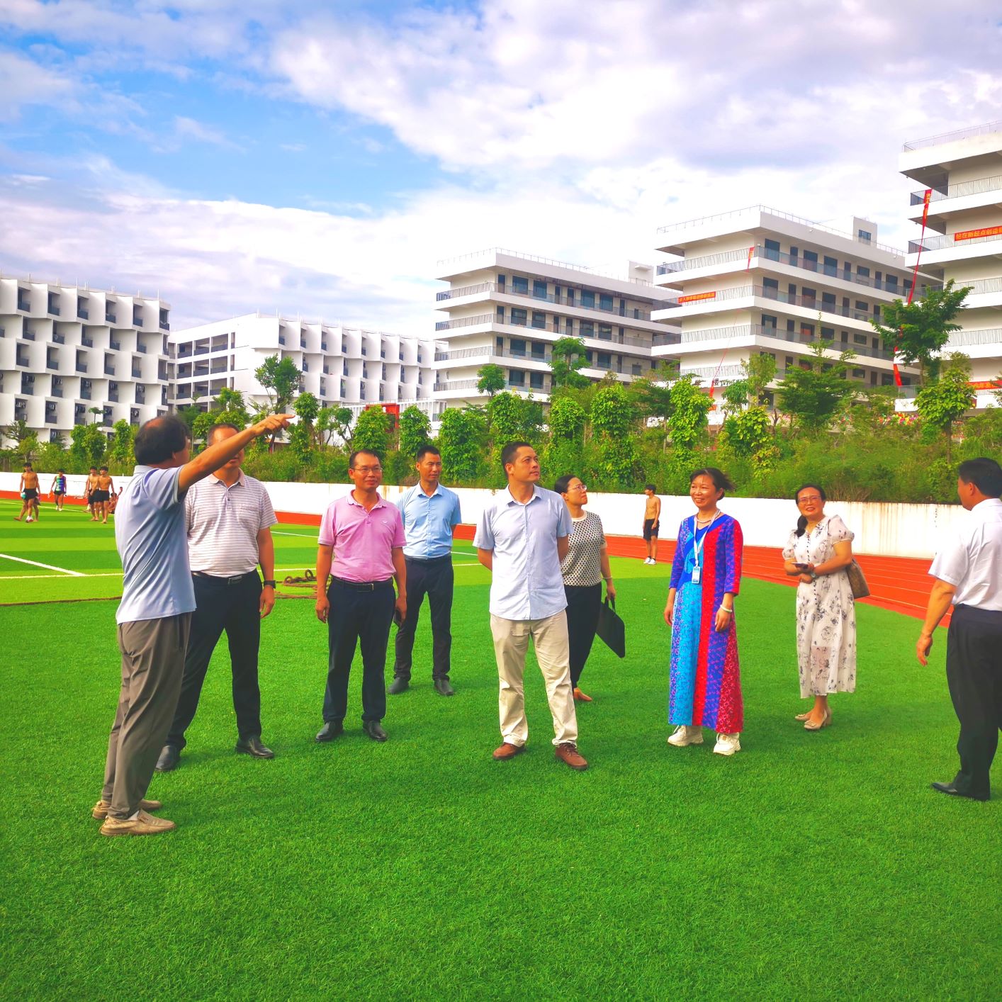 陈校长带领各级领导先后参观了学校体育馆、室外操场、文化走廊、教学设施等教学场地。