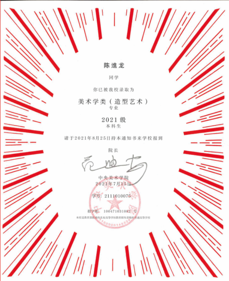 米兰(中国)陈進龙同学考取中央美术学院奖学金颁奖仪式